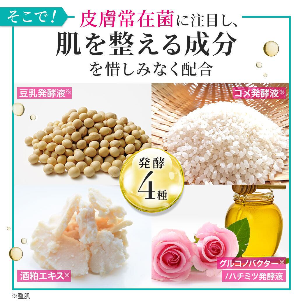 水、グリセリン、BG、豆乳発酵液、コメ発酵液、加水分解アナツバメ巣エキス、グルコノバクター/ハチミツ発酵液、リンゴ果実培養細胞エキス、ウンカリアトメントサエキス、酒粕エキス、スクワラン、ヒアルロン酸Na、加水分解シルク、ブドウつるエキス、ソメイヨシノ葉エキス、コメヌカエキス、ヤグルマギク花エキス、マンダリンオレンジ果皮エキス、オタネニンジン根エキス、カミツレ花エキス、セイヨウオトギリソウ花/葉/茎エキス、トウキンセンカ花エキス、フユボダイジュ花エキス、ローマカミツレ花エキス、フラーレン、ジラウロイルグルタミン酸リシンNa、加水分解水添デンプン、グリチルリチン酸2K、レシチン、ペンチレングリコール、グリコシルトレハロース、PCA亜鉛、マルトデキストリン、キサンタンガム、PVP、アセチルヘキサペプチド-1、デキストラン、水酸化K、エチドロン酸4Na、トレハロース、(アクリレーツ/アクリル酸アルキル(C10-30))クロスポリマー、カルボマー、エタノール、フェノキシエタノール